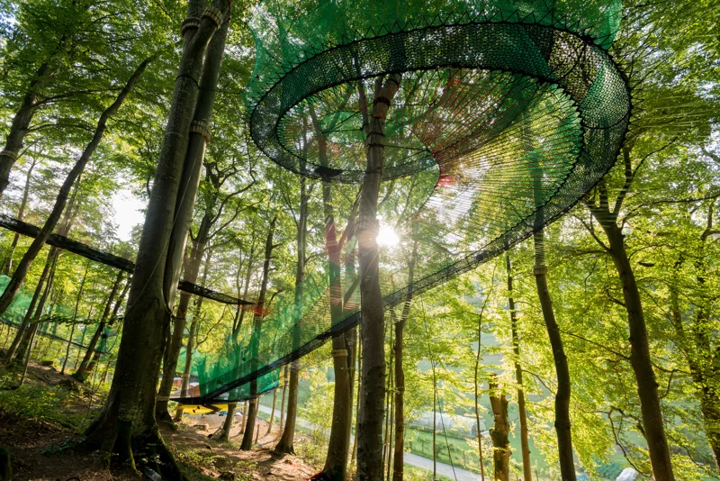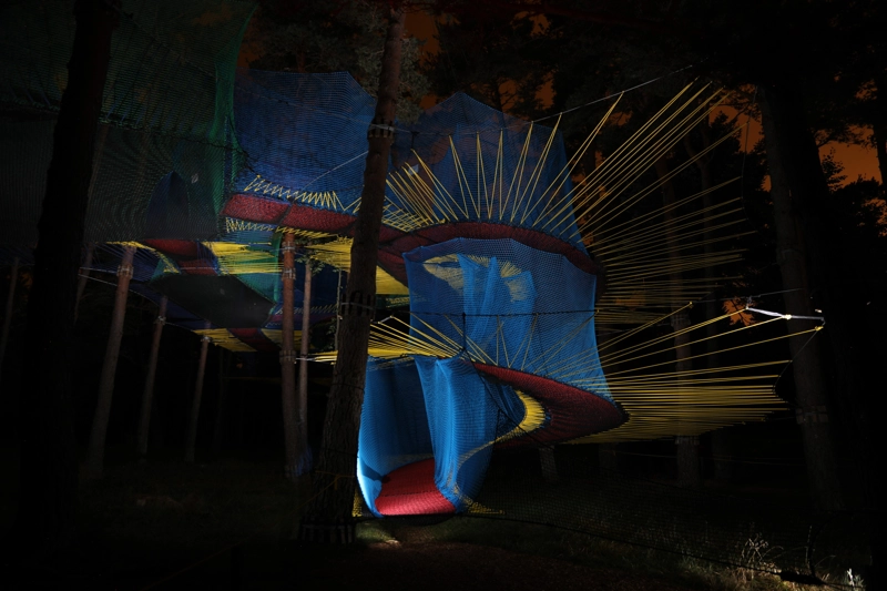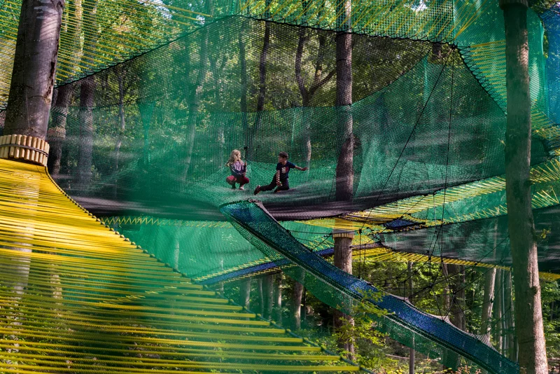 Wrongly compared to treetop adventure parks, Parcabout® are huge net sculptures suspended in trees (or installed on poles) within which everyone can move freely and safely.
